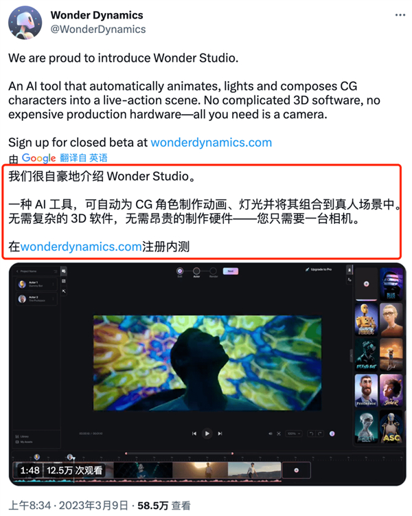 2、新动画工具Wonder Studio,个人可以畅玩