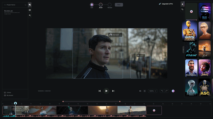 2、上传视频到Wonder Studio,然后把你喜欢的CG角色覆盖到真人上;
