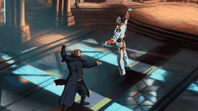 先来看一组动画剧情:一对双胞胎兄弟,其中一个男人走进教堂,要与另一个人决斗。