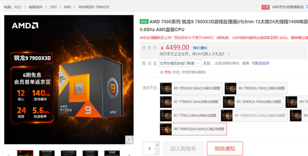 不过,今年2月底发布的AMD 7000系列中的两款X-3D处理器,目前处于缺货状态。