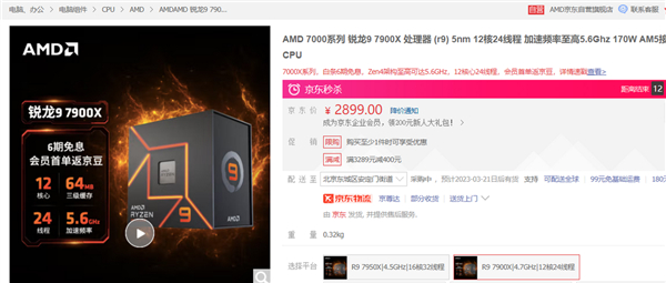 从平台显示的细节看,AMD 12核的锐龙9 7900X目前价格是2899元,相比首发4299元真的便宜不少,发布半年降幅超30%,还是相当狠的。