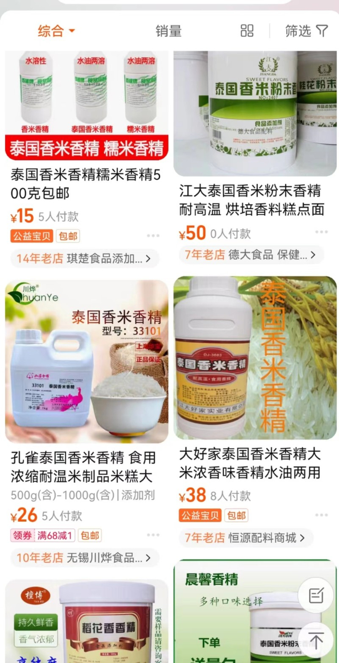 截至记者发稿,蓝鲸财经记者注意到,在淘宝、拼多多等平台仍有泰国香米香精在售,真正的泰国香米显然不需要用香精,可以推测,这些泰国香米香精存在的唯一目的就是让非泰国产大米冒充泰国香米,以假乱真!
