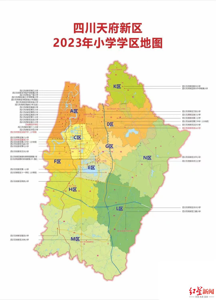 今年天府新区有多所新学校投用,为此,相应的学区有学校新增。其中,四川天府新区第十二小学、四川天府新区广都小学划归到A学区,至此,服务于A学区的学校增加至16所。而四川天府新区第八中学小学部划片到C学区,至此,服务于C学区的学校增加到4所,值得一提的是,在今年天府新区还增一所面向全区范围招生的天府实验中学(小学部)