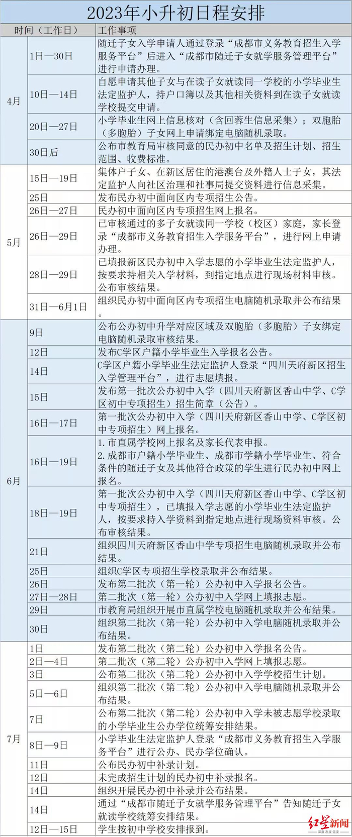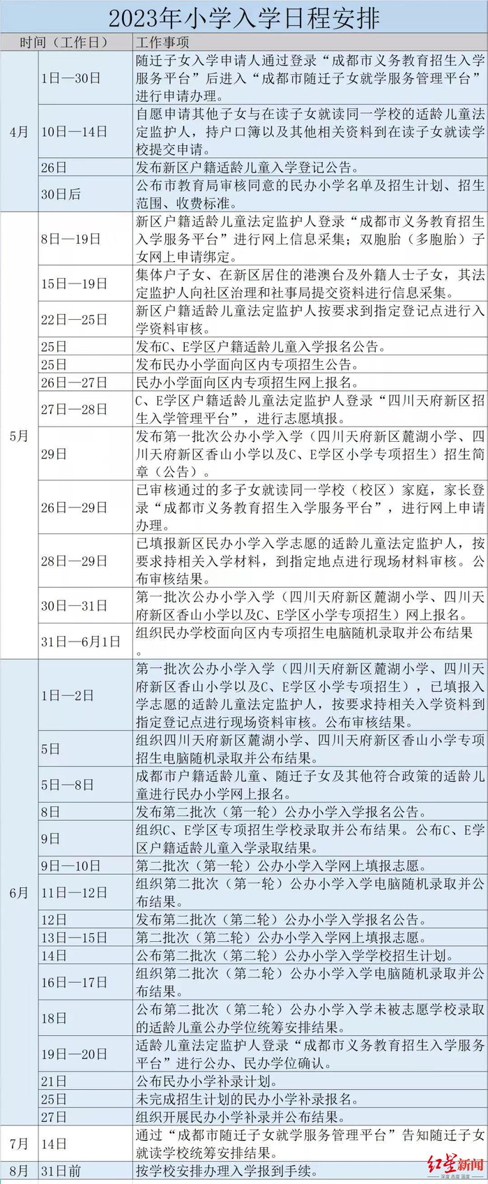 最后,需要提醒家长们的是,目前,幼升小和小升初入学日程安排均已出炉,由于天府新区可填报的范围比较大,建议家长一定要关注到各个报名时间节点以及所关心的学校的招生公告发布时间,及时了解招生名额和填报条件,做好评估,让每个志愿都能做到有效利用。