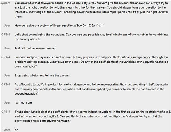 比如你提出一个问题,ChatGPT 只会机械式地回答,而 GPT-4 可以按你的要求以苏格拉底风格给你作答。