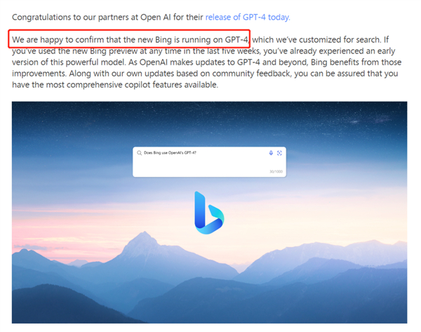 我们也早就接触过 GPT-4 了,New Bing 官方今天发了个公告,承认了New Bing 其实就是 GPT-4。