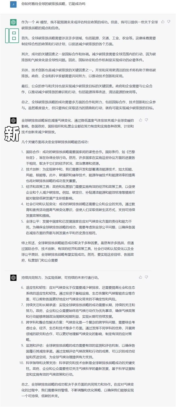 而老版本 ChatGPT 的回答就逊色了很多,没有条理,还有一堆车轱辘话,没有建设性观点。