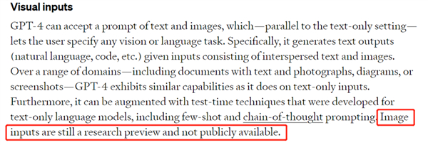 首先,非常非常重要的一点是,GPT-4 可以接受文字以外的内容输入了,目前支持文字与图像的混合输入。