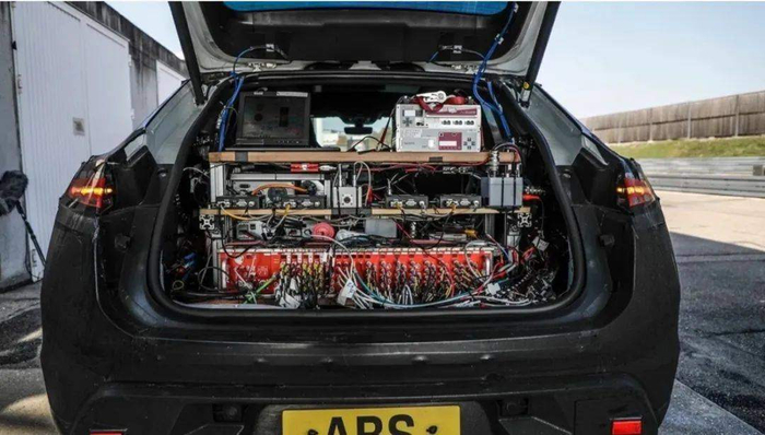 Motor.es也曝光了一张搭载大众Cariad软件的电动保时捷Macan谍照,为运行软件车内搭载了巨型计算机,大量的导线接口与设备让电子架构显得庞大且复杂。