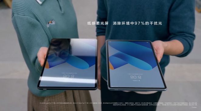 今天华为官方带来了 MatePad 11 平板 2023 款预热,主打纸感读写体验,将亮相华为春季旗舰新品发布会。华为官方视频宣传,该平板为华为首款柔光屏平板,防眩护眼,纸感读写。华为 MatePad 11 平板搭载纸感柔光屏,可消除环境中 97% 的干扰光。纸感书写,还原熟悉的纸笔体验。