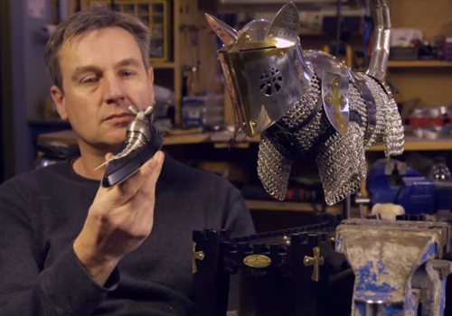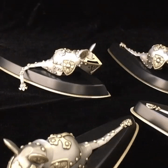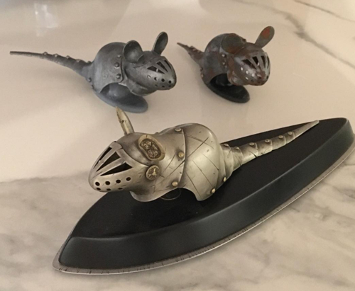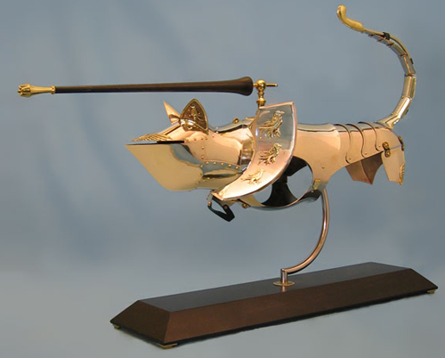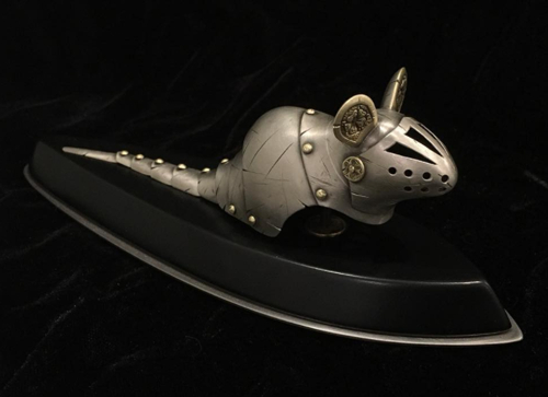 下面这个是一套银制铠甲,Jeff打造了七套,其中有一套还被塞进了时间胶囊,准备让后人在1000年后打开,不知道会不会引发出一段关于老鼠骑士的传说。