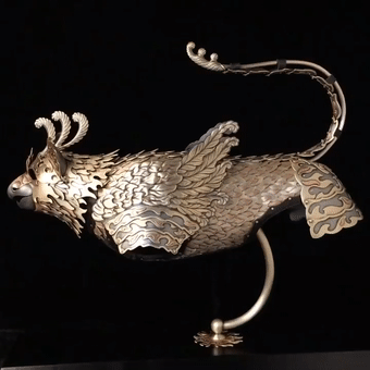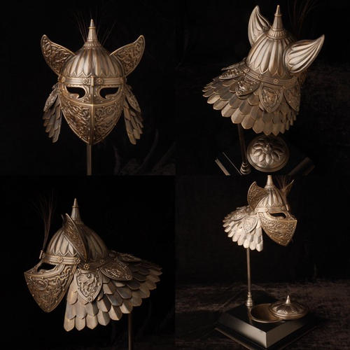下面这一套是花费超过 400个小时制作的「凤凰猫」铠甲,全身有羽毛状的波浪图案,如同火焰缠身。手工制作的零件多达500个,极为华丽: