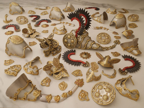 有了铠甲的主体后还要根据设计图来雕刻一些华丽的装饰: