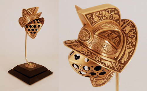 相比之下,这个「角斗士猫头盔」就奢华多了,上面图案内容也是和猫咪相关的。