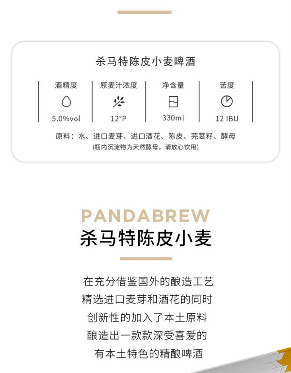 天猫熊猫精酿旗舰店,熊猫精酿杀马特比利时陈皮小麦精酿啤酒330ml*3听售价32.9 元,今日买一赠一到手6听。