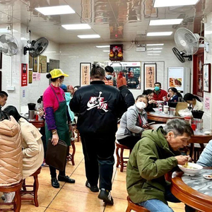 △店外排起长队,店内服务员忙着翻台