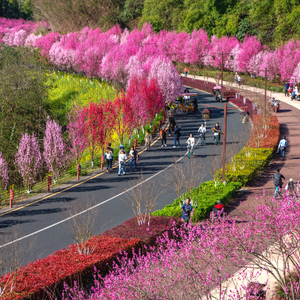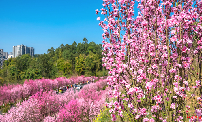 四川乐山嘉州绿心公园“十里桃花”盛开,绝美春景吸引大批市民游客打卡