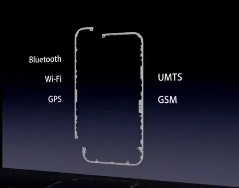 设置,天线还可以直接做到金属外壳里,比如上图的设计(认得出来哪款手机吗),天线就集成在了手机侧边的两段金属中框中,其中一段负责蓝牙、Wi-Fi、GPS,另一段负责通话。