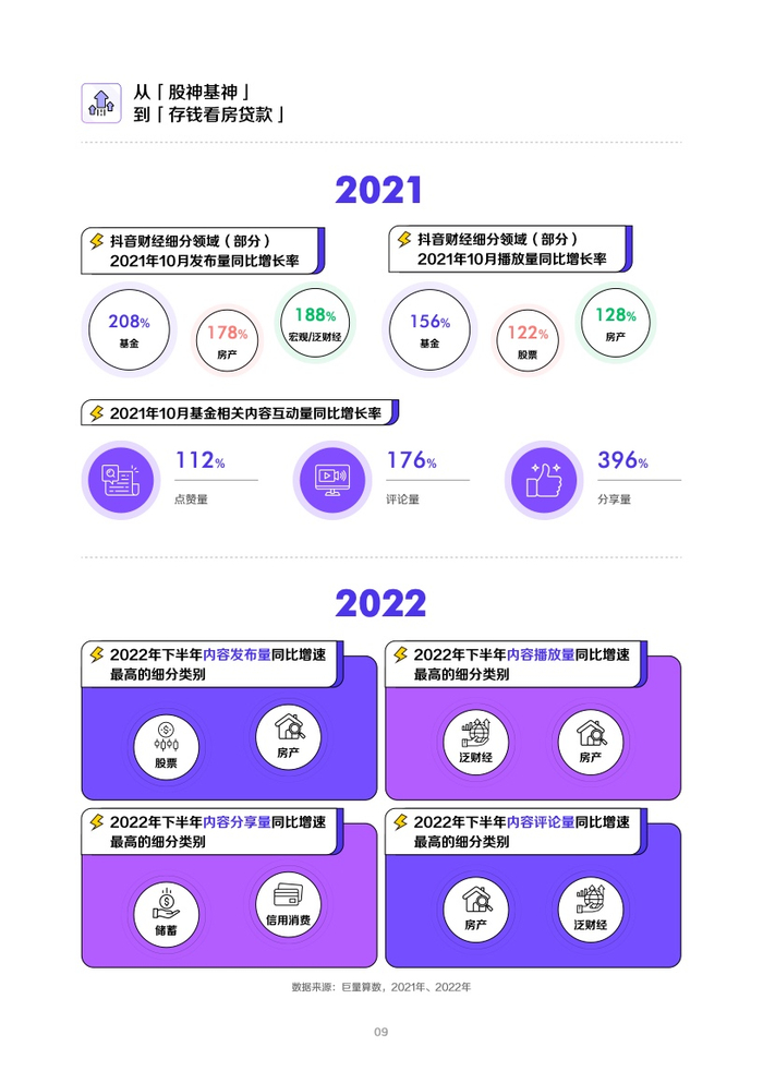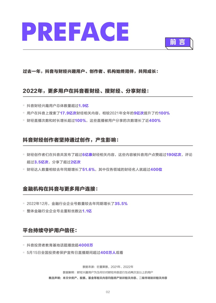 2022抖音财经内容生态报告总结了过去一年财经用户和创作者的变化、情绪变化、需求变化,也对2022年抖音财经内容生态进行了完整盘点。