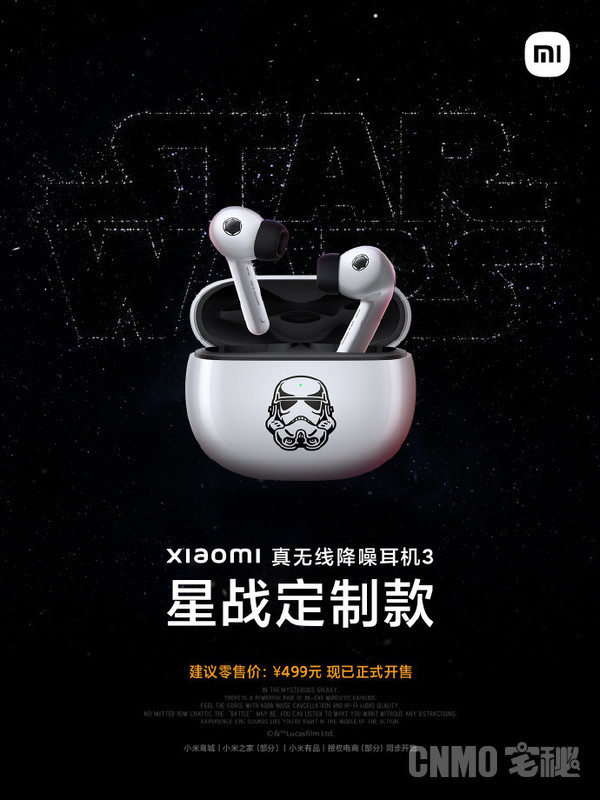 小米真无线降噪耳机3星战定制款正式发售踏上星际之旅,探索未知领域,小米真无线降噪耳机3星战定制款带你重返银河宇宙。设计上,小米真无线降噪耳机3星战定制款以星球大战风暴兵为原型,对很多细节进行了定制。耳机盒上印有风暴兵标志,就像你的星战专属徽章。采用高光喷涂工艺,历经数十道工序打磨,让你的“星战徽章”更光滑、更坚硬,时刻等待使命的召唤。