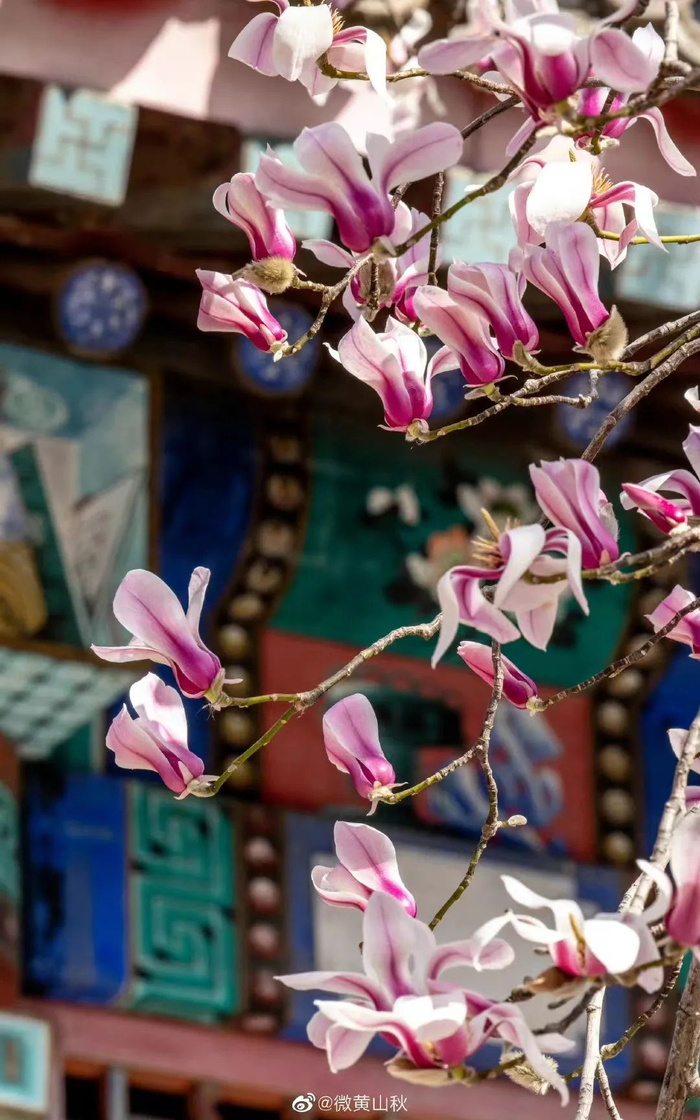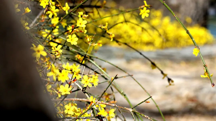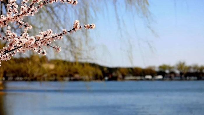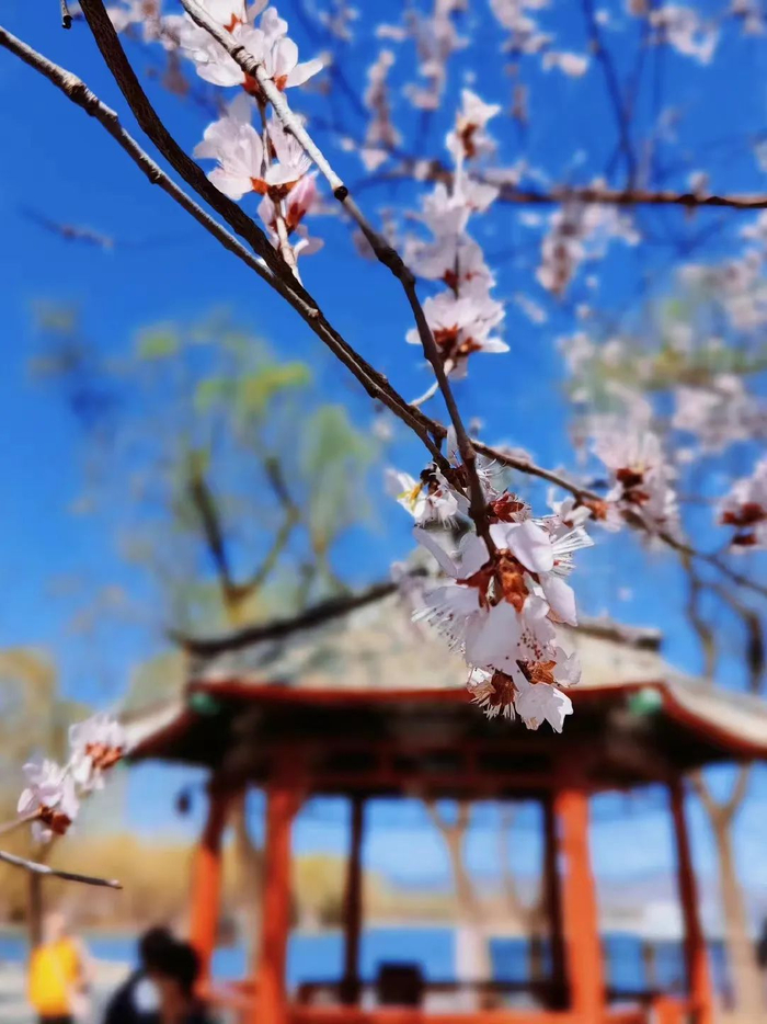 后溪河秋景广受市民游客喜爱,但是在后溪河区域则是一条小众赏花路线。后溪河沿线种植有山桃、连翘、丁香、香荚蒾、梅花等观赏花卉,观赏期自3月中旬一直持续至5月初。目前梅花已经进入盛花期,游客可以在紫气东来城关、谐趣园夕佳楼、益寿堂周边观赏到盛开的梅花。