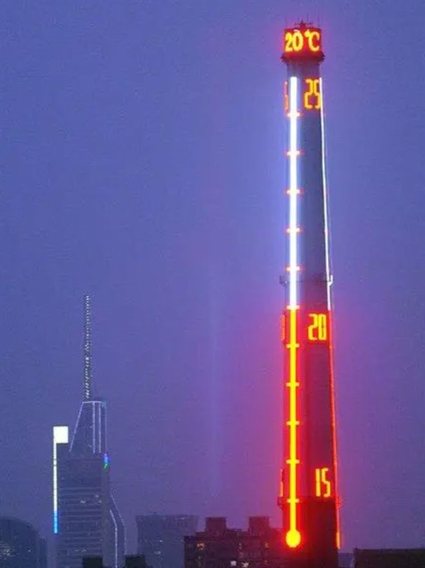 它是上海当代艺术博物馆大烟囱上,安装的刻度显示屏。