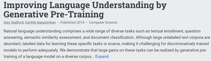 论文地址:https://www.semanticscholar.org/paper/Improving-Language-Understanding-by-Generative-Radford-Narasimhan/cd18800a0fe0b668a1cc19f2ec95b5003d0a5035
