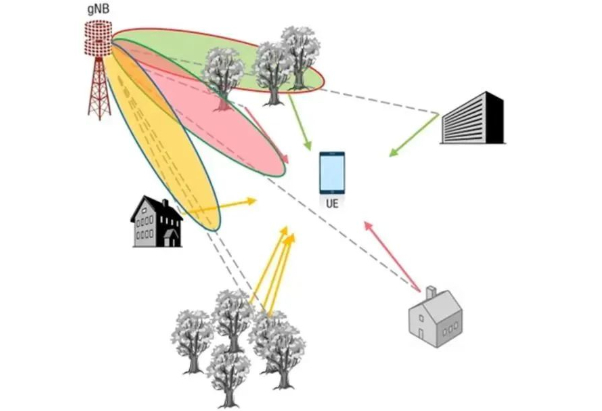 FD-MIMO下最多32个交叉极化天线排成阵列,基站根据终端上报的测量信息对数据进行波预编码/ 波束赋形处理。FD-MIMO中第一次提出了beamformed CSI-RS的概念,不同CSI-RS 端口经过波束赋形在同一个物理天线上传输。FD-MIMO是NR大规模天线技术 (Massive MIMO) 的雏形。NR标准将CSI-RS天线端口扩大至32个,目前主流的设备商都推出了64T64R的基站产品。更多的CSI-RS端口以及天线数量使基站发出的信号具有更强的方向性,信道状态信息的反馈具有更小的颗粒度。在FD-MIMO以及Massive MIMO技术中,因为存在水平和垂直两个方向波束赋形的可能,对多天线无线信道进行建模时需要考虑到三维空间中的物体带来的各种折射,反射,散射等影响(图2)。