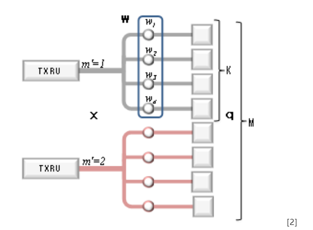 图12中2*2 空分复用系统的接收信号y可以由下列公式来表示,