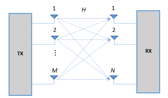 MIMO 是multi-input multi-out put 系统的缩写,从字面上来看任何具有多个发射和多个接收天线的无线系统都可以称为MIMO。除了MIMO之外,还有single-input multiple-output (SIMO),multiple-input single-output (MISO) 这些只在发射端或接收端有多个天线的准多天线系统。