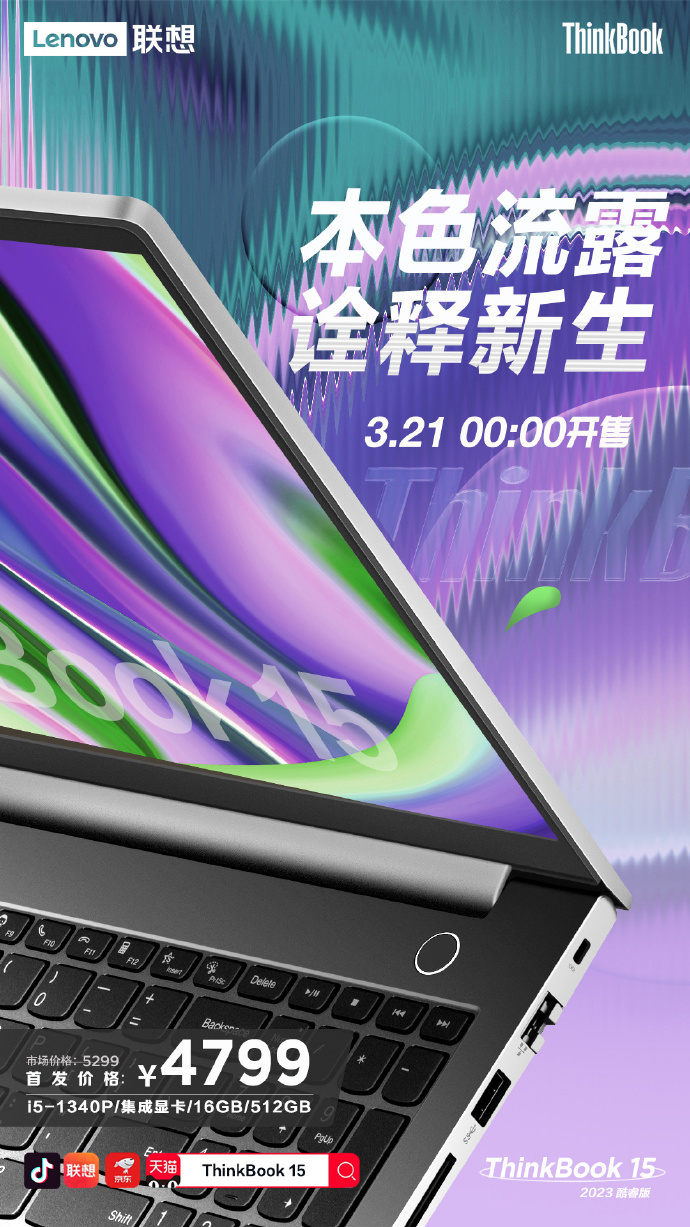 联想 ThinkBook 14/15 2023 酷睿版笔记本今晚开售,首发 4799 元