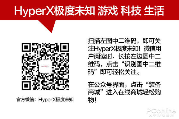 欢迎关注微博:HyperX极度未知(http://www.weibo.com/HyperXclub)与微信公众号:HyperX极度未知,参加最新活动,交流产品心得。