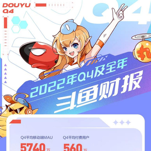 得益于更丰富的精品游戏内容和差异化的互动玩法,第四季度,斗鱼总营收为16.81亿元,实现净利润4180万元,调整后净亏损430万元,同比、环比都有非常可观的改善;移动端MAU保持平稳增长至5740万;付费用户也与三季度持平,稳定在560万。