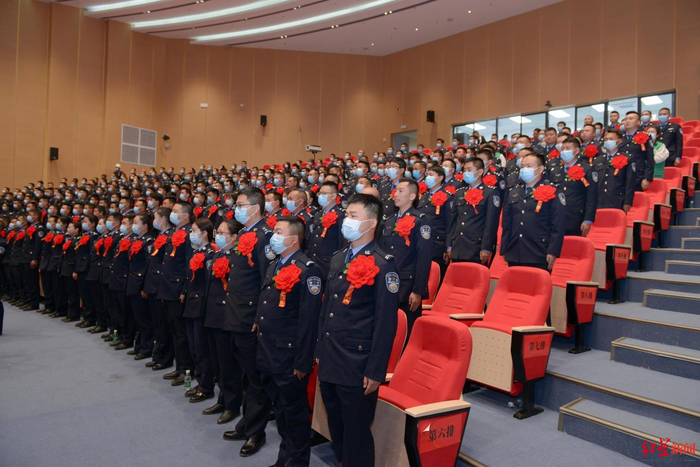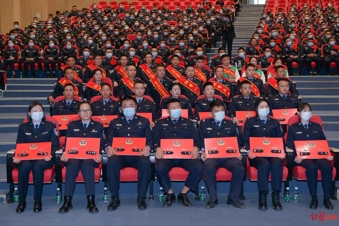 会上,812名辅警评定为1级至七级辅警,被授予对应辅警衔,54名辅警被任命为辅警组长。会议同时传达了警务辅助人员职务管理办法、问责条例等相关文件精神,嘉奖表彰了一批优秀辅警、优秀禁毒社工,授发辅警衔和优秀辅警代表发言。