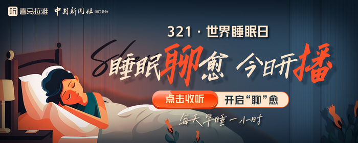3月21日世界睡眠日,喜马拉雅联合中国新闻社浙江分社推出睡眠日“聊”愈播客专题,助力人们通过播客缓解焦虑,疗愈心灵,“每天早睡一小时”。