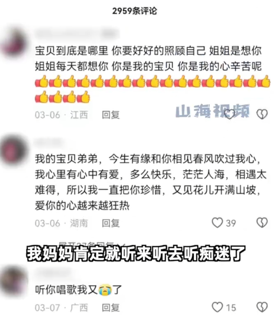 “关于靳东视频唱那些音乐,就说姐姐姐姐亲爱的姐姐这些,我妈听来听去听痴迷了,晚上一个人躲到角落里去叫什么亲爱的弟弟宝贝。”刘女士说。