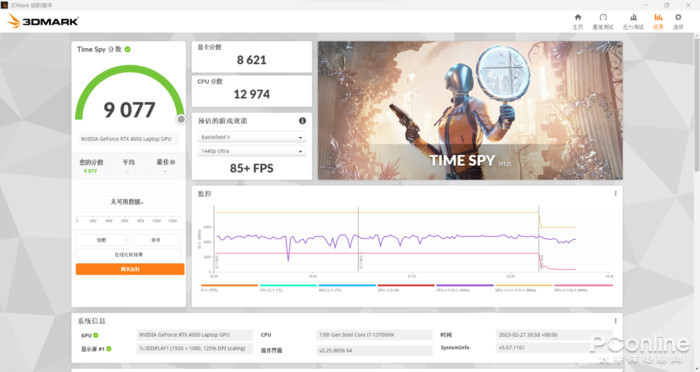 TimeSpy,主要考验显卡在2K画质下DX12的性能,显卡分数为8621。