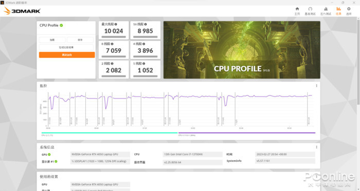 3DMarkCPUProfile,搭载酷睿i7-13700HX的七彩虹将星X15AT的1线程得分为1052、最大线程得分为10024。