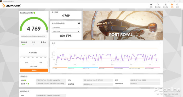 光追PortRoyal评分也有着4769分的水准,已经相当逼近RTX3060LaptopGPU的水平。