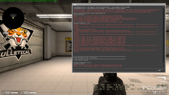 在《CS:GO》中,我们选择画质设置为高,选用创意工坊中的FPSbenchmark地图进行测试。在1920x1080分辨率下,七彩虹将星X15AT运行游戏的平均帧数为331.32fps,配合屏幕145Hz高刷新率,游戏环境完全可以达到专业电竞的要求。
