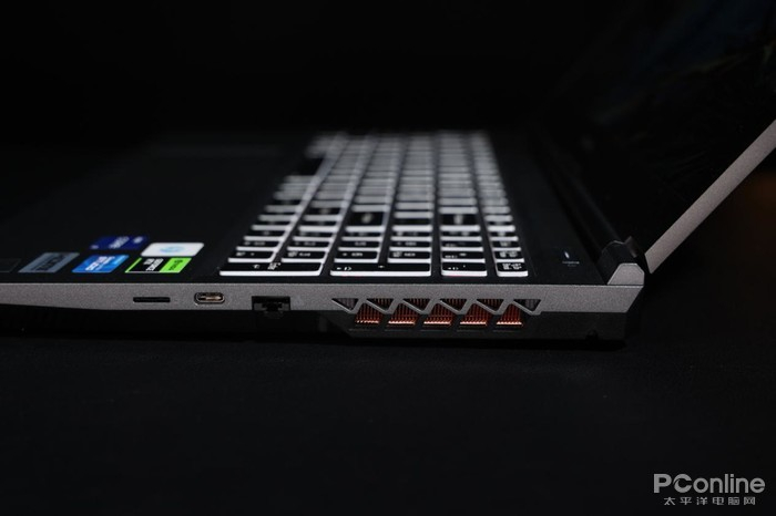 接口配置上,机身左侧搭载了1个USB3.2接口,1个USB2.0接口,1个麦克风孔,1个二合一音频接口;机身右侧配置了1个雷电4接口,1个MircoSD卡接口,1个RJ45网口;背部则提供了1个USB3.2(Type-C)接口,1个HDMI接口,1个MiniDP接口以及1个电源接口。