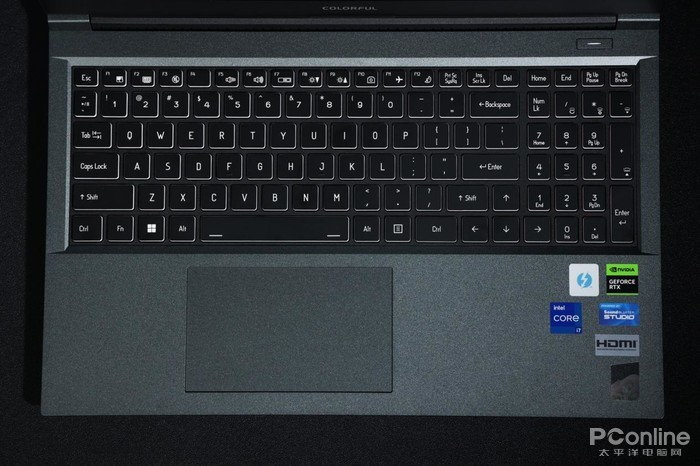 键盘部分,将星X15AT采用了一块炫彩背光键盘,并且拥有完整的全数字小键盘。键盘段落感清晰,反馈十足,使用手感出色。