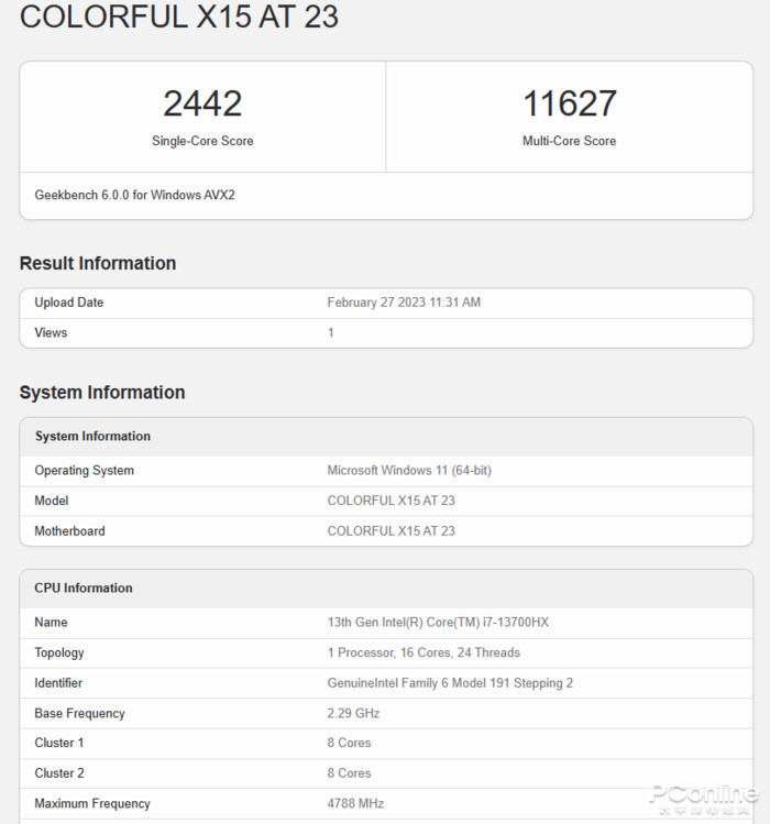 Geekbench6是最新的跨平台测试软件,相比上一代Geekbench5可以更加科学准确地评估处理器的性能。七彩虹将星X15AT单线程分数为2486、多线程分数为11627。