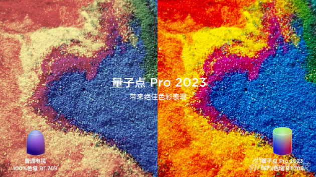 在色彩方面,TCL X11G依然沿用了TCL量子点QLED显示技术,已经进阶到最新技术标准的量子点技术,量子点材料由普通的二元量子晶体升级为四元量子晶体,实现了157% BT.709高色域,色彩达到10.7亿级;色彩表现更精准,色彩纯度提升58.3%,色准ΔE小于0.99;同时量子点材料寿命由6万小时提升到10万小时。