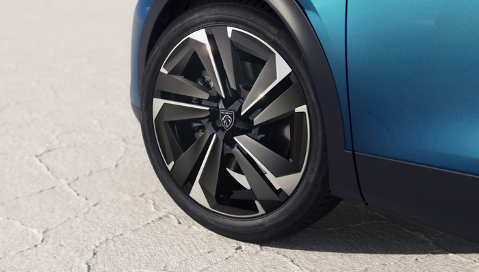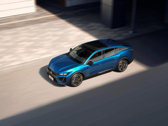侧面看,408X 全车身采用锋锐几何拼接,车身颜色上首创二向色“幻蓝”,采用法国进口云母 ——Colorstream,在强光下呈现蓝色,弱光下呈现绿色。