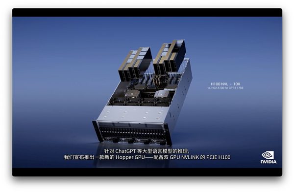 其中,H100 NVL是专门为LLM设计的GPU,采用了Transformer加速解决方案,可用于处理ChatGPT。相比于英伟达HGX A100,一台搭载四对H100和双NVLINK的标准服务器速度能快10倍,可以将大语言模型的处理成本降低一个数量级。此外,H100 NVL配备94GB HBM3显存的PCIe H100 GPU,采用双GPU NVLink,支持商用PCIe服务器轻松扩展。