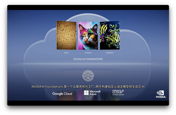 黄仁勋带来的另一项关于云的重磅发布是NVIDIA AI Foundations,旨在为用户提供定制化的LLM和生成式AI解决方案。该服务包括语言模型NEMO、视觉模型PICASSO和生物学模型BIONEMO。