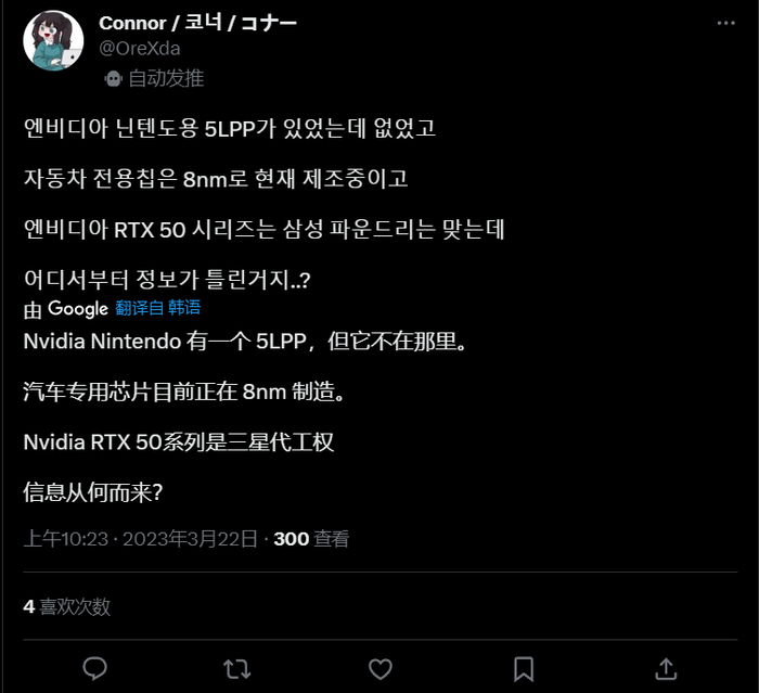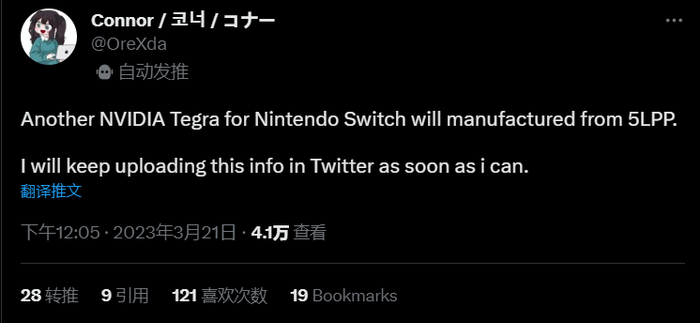 IT之家 3 月 22 日消息,舅舅党 @OreXda 昨天表示,任天堂将在下代主机上采用 NVIDIA 新一代的 Tegra 芯片,这颗芯片将基于三星 5LPP 工艺。