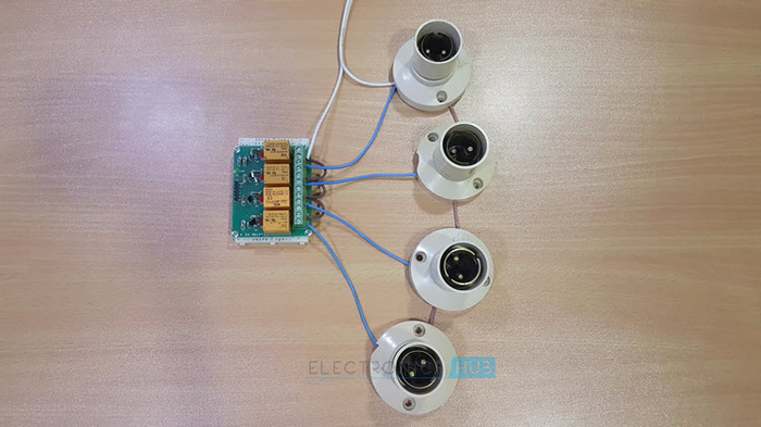 现在继电器输出引脚得到230V电压。因此,不要碰触连接的负载引脚。