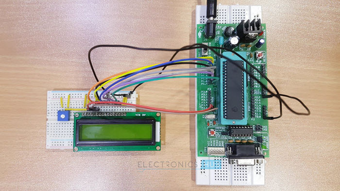 另外,一个10KΩ的POT被连接到LCD的对比度调整引脚,以控制显示的对比度。